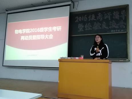 随后五位2015级考研成功的同学进行了经验分享,介绍了他们考研成功的经验,从如何选择高校、信息获得渠道、考研复习侧重点及方法等诸多方面,让准备考研的同学了解了更多有用的学习方法和考研技巧。