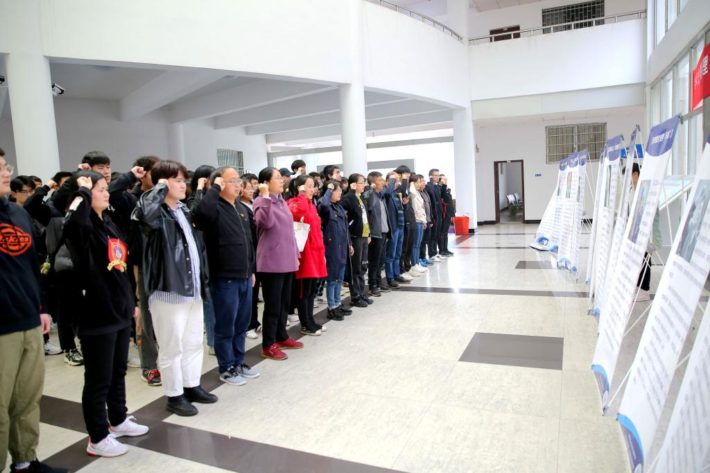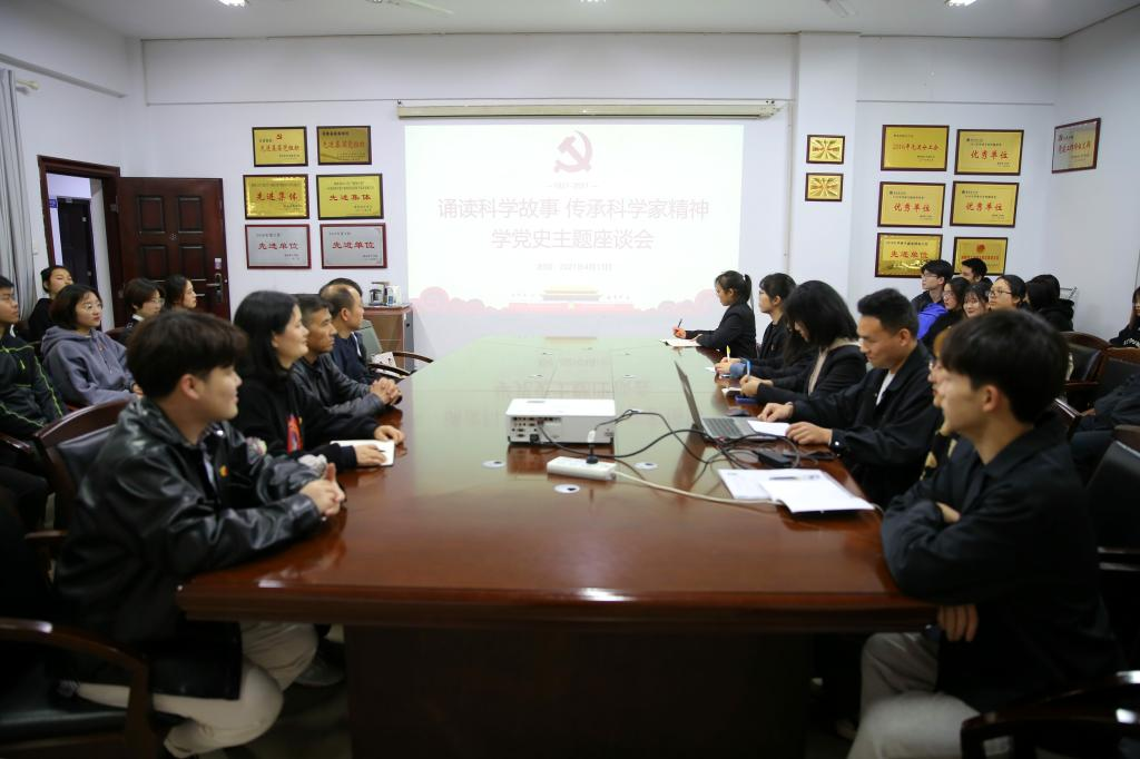 当天下午,公司召开“诵读科学故事 传承科学家精神”学党史主题活动及座谈会,物理公司党委书记罗文华,员工第一党支部书记何小娅及相关学员参与座谈。全体党史师生在爱国科学家展板前,重温入党誓词。