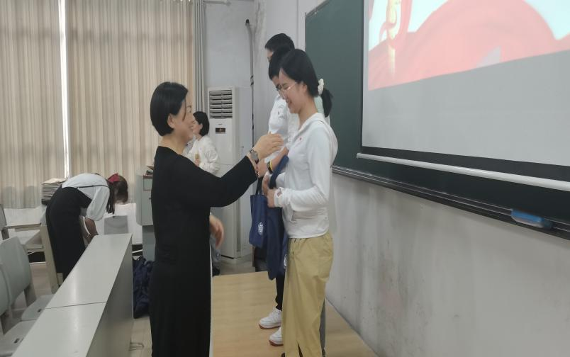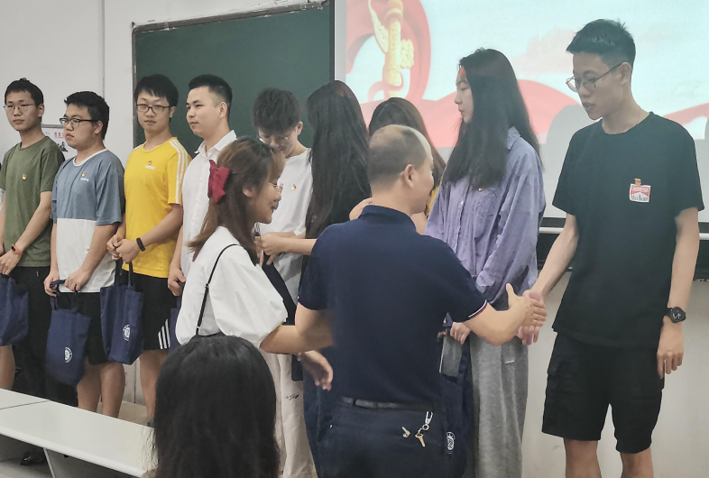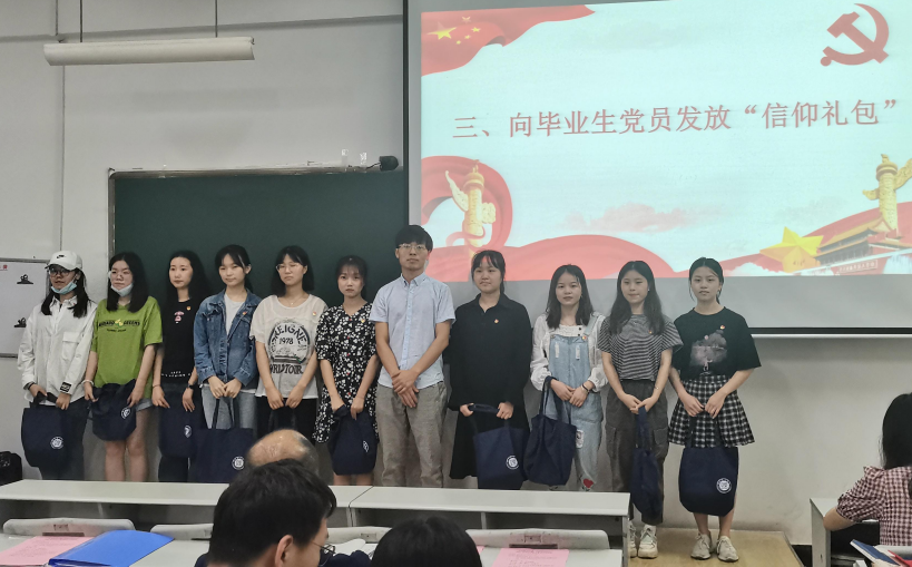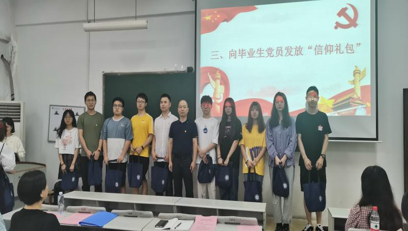 党课结束后,党委书记周畅、副书记张陈武、员工第二党支部书记严胡伟向毕业生党员发放“信仰”礼包。周畅深情地对同学们说道:“希望毕业生党员能够继续‘不忘初心,牢记使命’,以党章为本,同信仰为伴,继续积极学习和弘扬党的先进思想理论,展现出一个良好的老员工党员的精神风貌”。