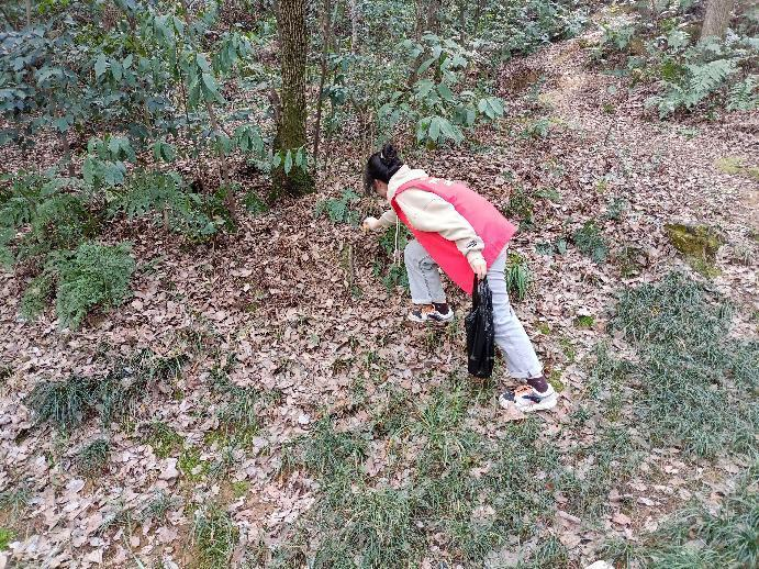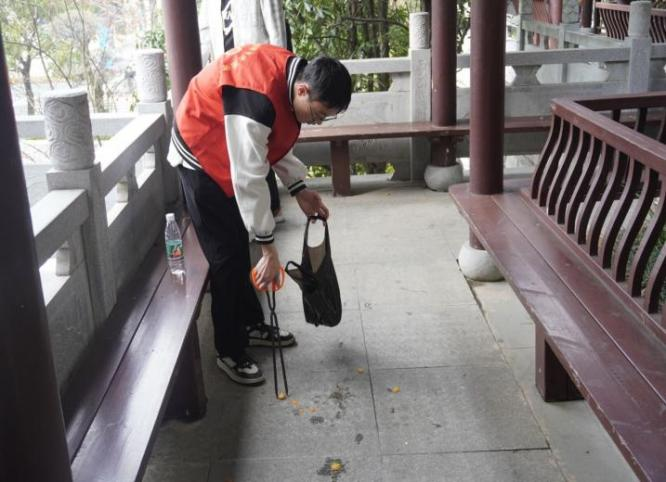 在途中,入党积极分子积极配合院青志中心,对公园花坛,道路,甚至人们不常走的林间小路进行了清理。烟头,瓜果皮,土壤中年限已久的塑料袋都被一一拾起。沿途的许多游客也将身边的垃圾捡起扔进我们的垃圾袋。