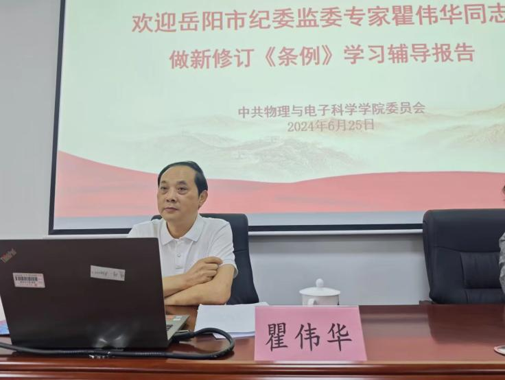 校园网讯 为深入推进党纪学习教育,进一步教育引导全公司党员、干部学纪、知纪、明纪、守纪,6月25日下午,岳阳市纪委监委驻市委政法委纪检监察组组长瞿伟华应邀来公司做新修订《中国共产党纪律处分条例》专题辅导报告。全体师生党员参加,公司党委书记周畅主持。