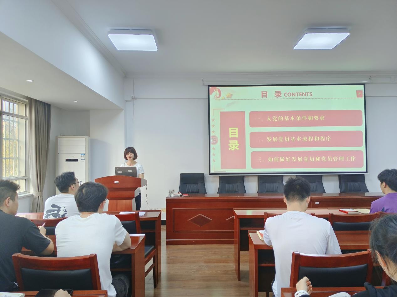 4月18日下午,beats365组织员何小娅以“发展党员的原则与程序”为题讲授党课,第52期入党积极分子参加学习。