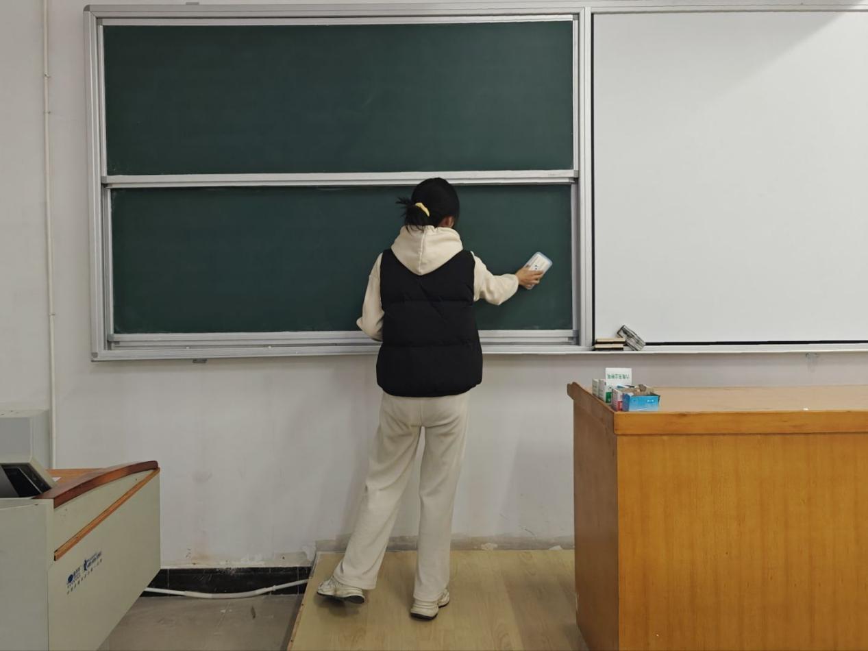 入党积极分子对教学楼公共区域进行全面清扫,他们分组协作,完成了楼梯扶手擦拭、走廊地面清洁、公共物品整理等,展现出良好的协作精神和务实作风。