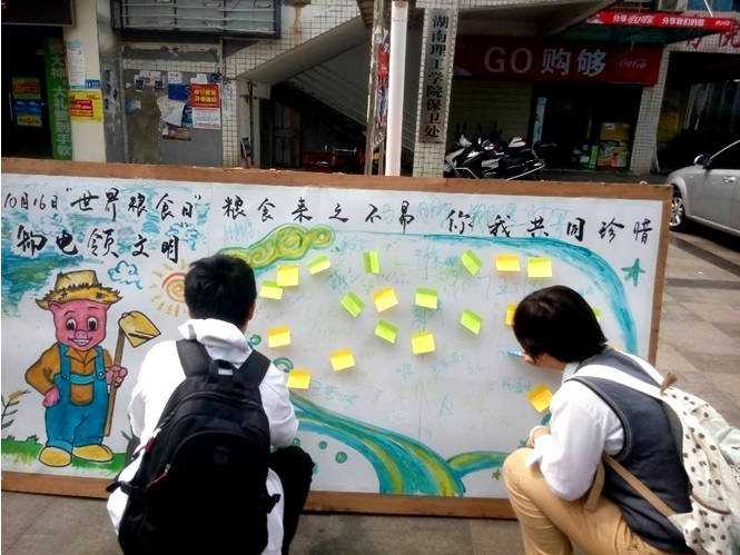 2014年10月16日,World Food Day。在第34个世界粮食日里beats365学子发起了“爱粮节粮,争做“光盘”女神”为主题的系列教育实践活动。
