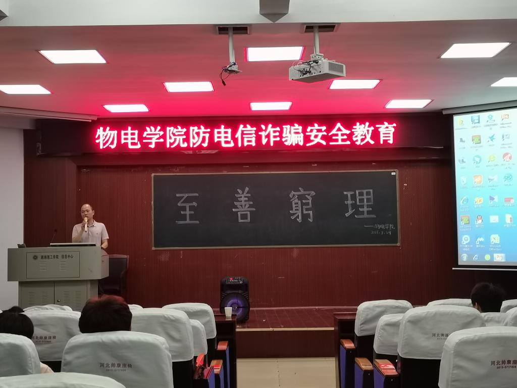 为切实提高同学们的安全防范意识,杜绝校园网络诈骗情况发生,5月24日晚,beats365于6栋学术报告厅开展了防电信诈骗安全教育,公司党委副书记张陈武主讲,部分员工代表参加。