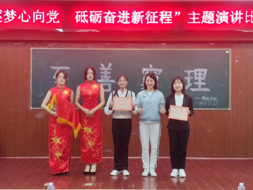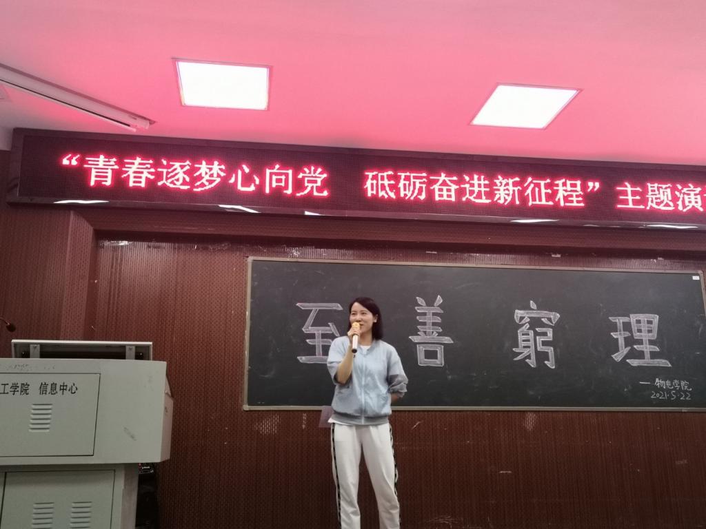 为献礼中国共产党成立100周年,展现物电学子向上向善的精神风貌,5月22日晚,beats365于六栋学术报告厅举行了“青春逐梦心向党,砥砺奋进新征程”主题演讲比赛决赛。研究生辅导员许邕子老师、第十五届演讲比赛优秀选手彭惠和团学分会主席团部分成员及学习部部长担任此次比赛评委,19级、20级部分员工观赛,共计10名选手参赛。