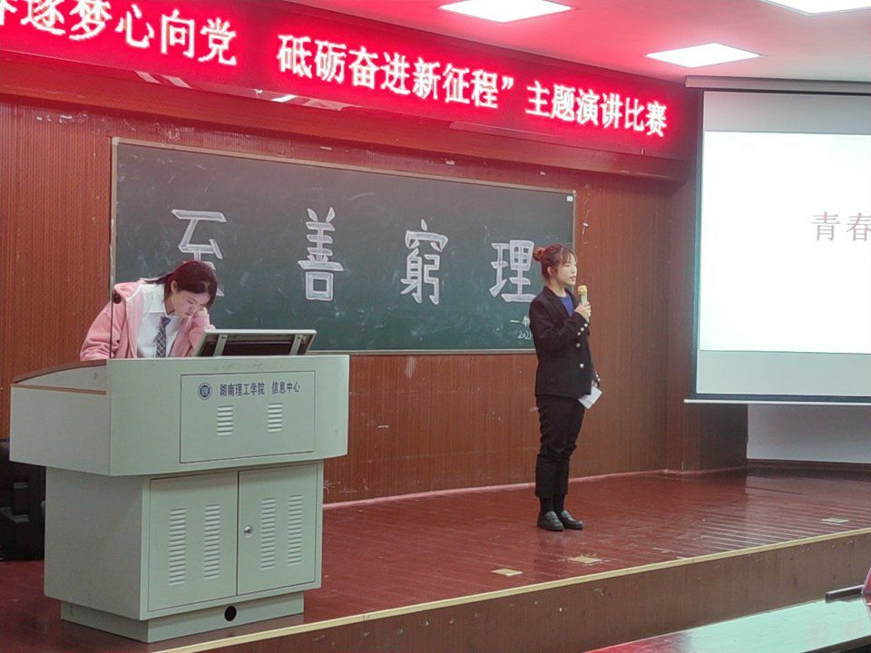 主持人简单介绍完比赛流程后,选手们依次上台演讲,他们身着正式的服装,伴随着舒缓的音乐与丰富的PPT内容向我们娓娓道来他们关于奋斗的青春故事,讲述着中国共产党熠熠生辉的百年历程。