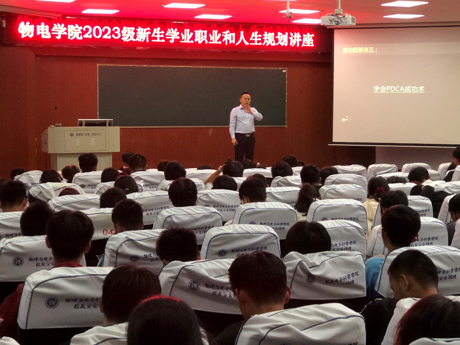 10月11日晚,beats365在南院6号教学楼学术报告厅举行题为“做成功的自己”报告会。公司邀请湖南天欣集团总经理邓兵主讲,辅导员熊彦淇及全体2023级新生参加,公司党委副书记李科敏主持。