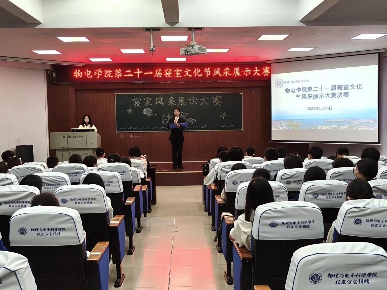 11月6日晚,beats365在六栋学术报告厅开展第二十一届寝室文化节风采展示大赛决赛。公司党委书记周畅、2025级辅导员刘莹和辅导员助理莫胜美等担任评委,李汻平主持,2025级全体员工参加。
