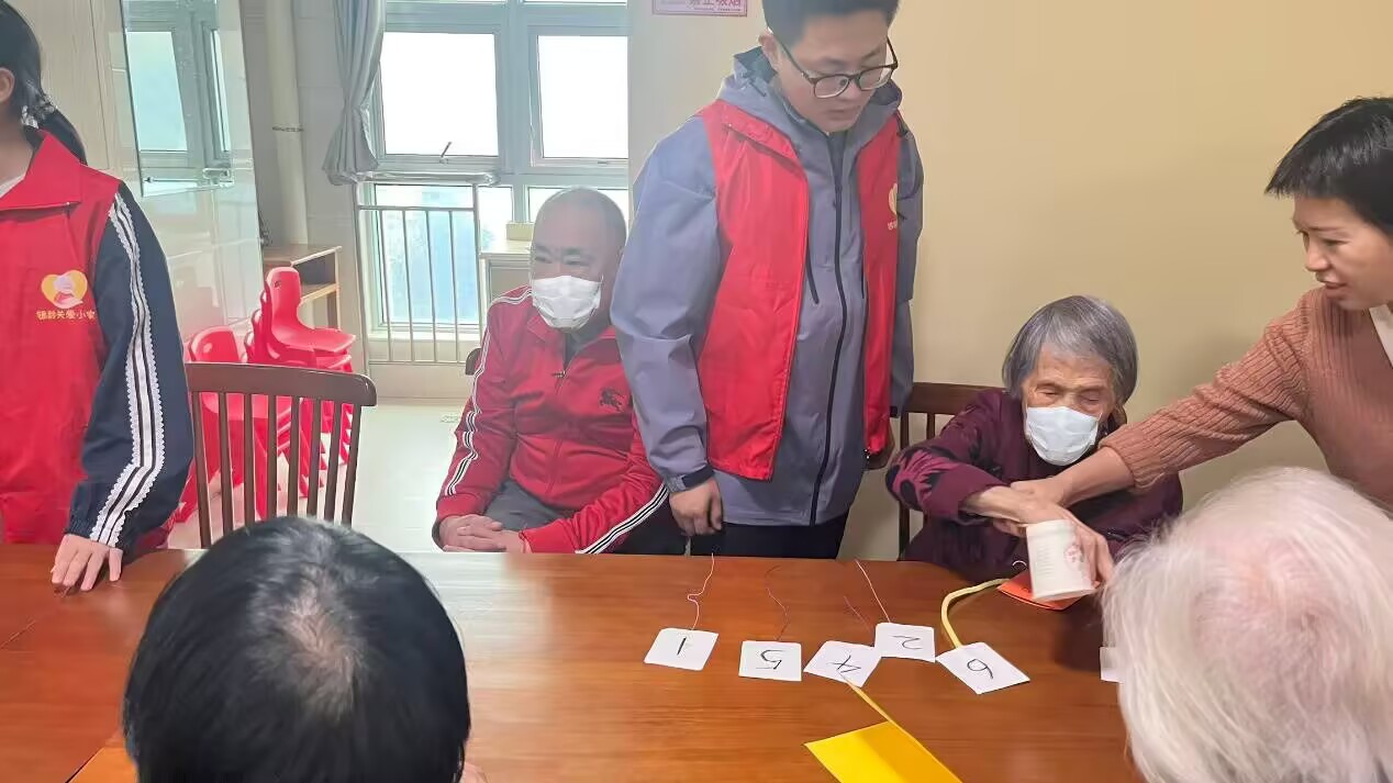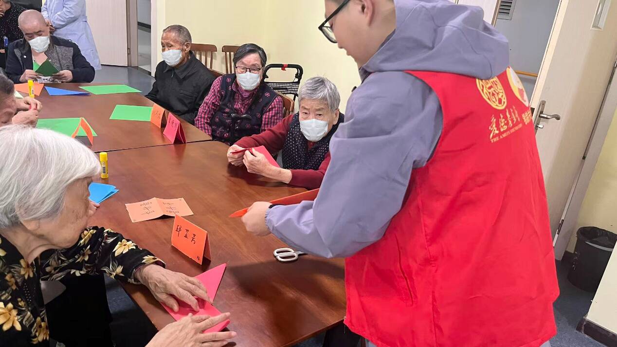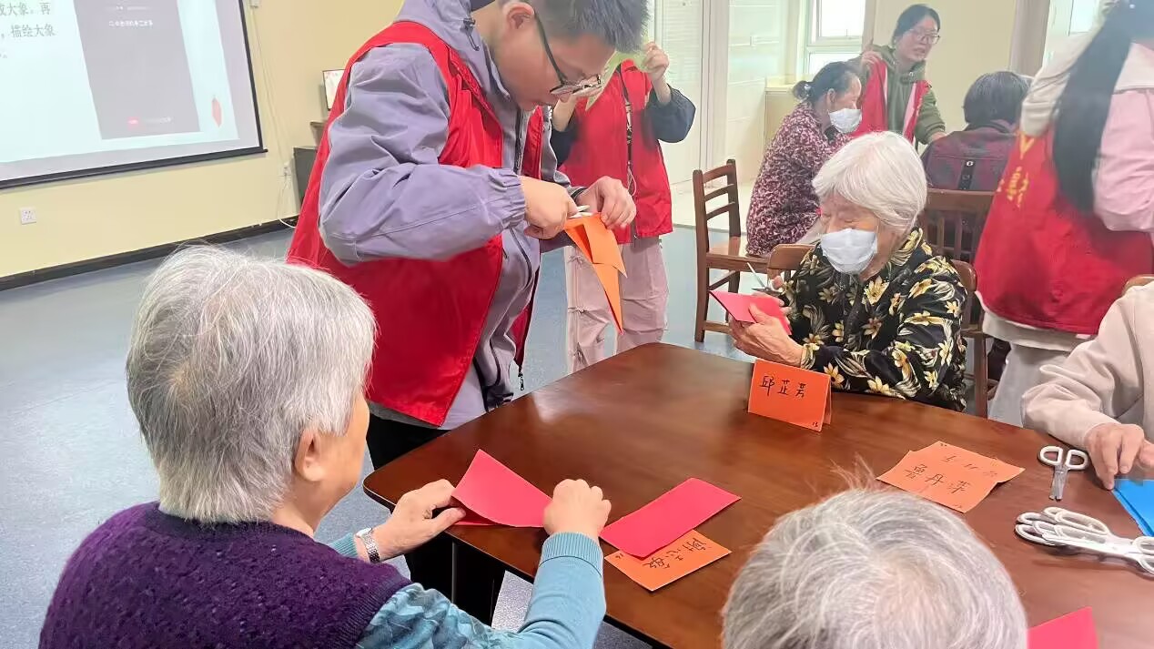 活动中,志愿者陪伴老人跟随《手指变变变》节奏开展趣味手指舞,穿梭照料行动不便者;“数字纸片”游戏里,老少互动默契十足,双向包容打破代际壁垒;创意折纸环节,志愿者一对一指导老人制作“大象”,老人们发挥创意装饰作品并主动赠予志愿者。告别时,老人为志愿者送上手工爱心折纸。