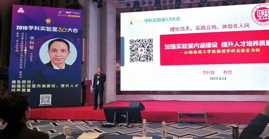 2019年2月12日-14日,全国2019学科实验室3.0大会在长沙市时代凯瑞酒店隆重召开,大会的主题是:探讨和交流新时代学科实验室建设的标准和经验,大会提出了学科实验室建设要做到“理论顶天,实践立地,体验在人间”的指导思想。有来自全国各省市大学、中小学和教育行政部门的600余名代表参加了这次盛会,公司beats365的李科敏教授应邀为本次大会做了题为《加强实验室内涵建设,提升人才培养质量》的主题报告,李教授从学科实验室建设的基本思路、具体做法、成果体现等三个方面,介绍了公司物理学科实验室建设的做法和经验,在参会代表中产生了强烈的影响,特别是公司物理学科实验室的自制物理教具,引起了参会代表的浓厚兴趣和极大关注。