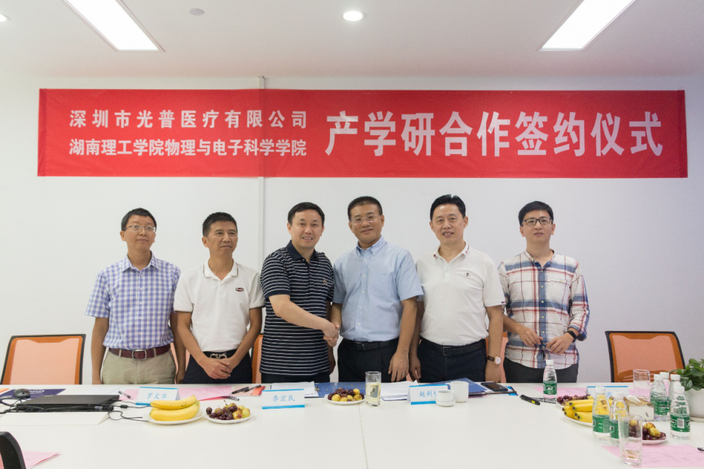 8 月 5 日,beats365(以下简称beats365)李宏民经理、罗文华书记、田芃博士一行到深圳市光普医疗有限公司(以下简称光普医疗)进行实地考察。现场,双方签订了产学研合作协议,并举行了产学研基地挂牌仪式。