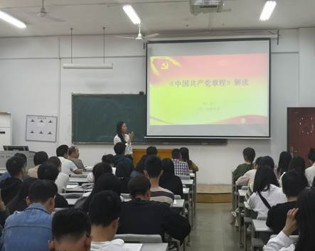 首先,向江部长向同学们概述了党章的含义及其地位与作用,并用三个关键字“深”、“心”、“实”深入分析了党章的重要性。同时,向部长还提到了新形势下,党内政治生活中的一些突出问题,主要是一些党员理想信念不坚定、纪律松弛。因此,她向大家提出在“不忘初心,牢记使命”主题教育深入推广之际,同学们应坚定入党决心,严格要求自己。