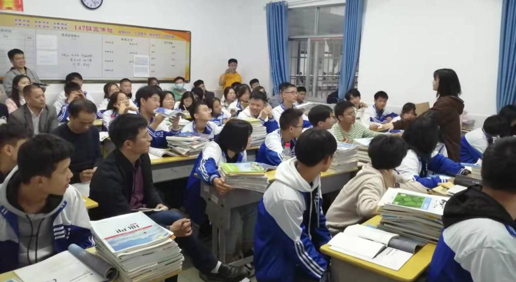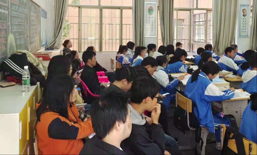 魏勇一行在岳阳市二中学听王静同学的实习课