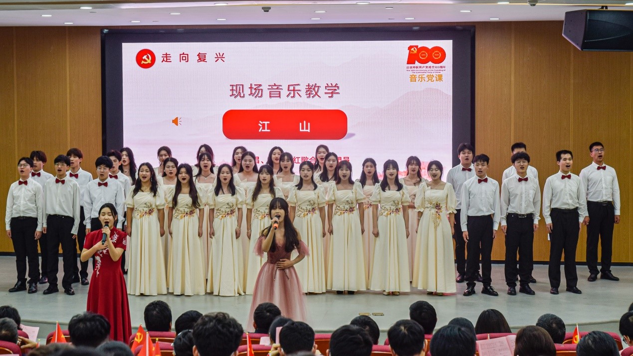 党课正式开始,黄皓华将党的百年历史分为“筚路蓝缕”“ 砥砺前行”“ 春潮澎湃”“ 走向复兴”四个阶段,深情讲述党在百年奋斗中哪些激情燃烧的岁月,通过音乐公司师生演绎的《浏阳河》《游击队之歌》《春天的故事》《我和我的祖国》《江山》一首首激扬的歌曲,beats365员工朗诵的《“两弹一星”精神》等艺术形式,让我们重新定义时代强音。革命历史舞蹈,党史互动问答更是打造全新党课形式,在场党员和入党积极分子无不感受到其中坚定的信仰和信心,沉浸在这场音乐旅途中。