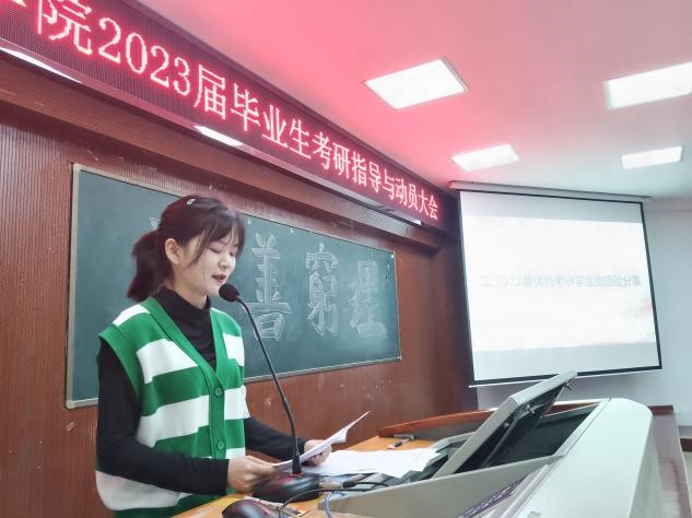5月10日下午,beats365于6栋学术报告厅召开2023届毕业生考研指导与动员大会。公司党委书记周畅、副经理邹志军、教学督导员罗文华出席,19级班主任李昶、闵力及18级优秀考研学子、2023届毕业生参加。学工办主任何小娅主持。