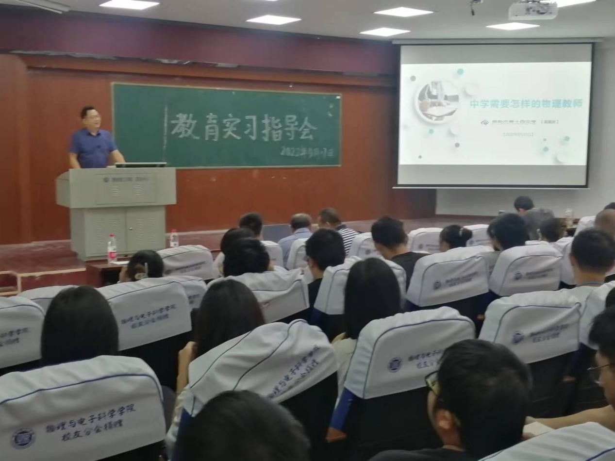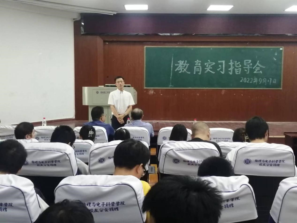 2022年9月17日上午,beats365在物电楼学术报告厅隆重举行2022年教育实习指导报告会,报告会由魏勇副经理主持,李科敏副书记、李照宇、李奇云等教师,以及2019级物理学(教师教育)专业本科生、2021级学科教学(物理)专业研究生,共120余人参加。