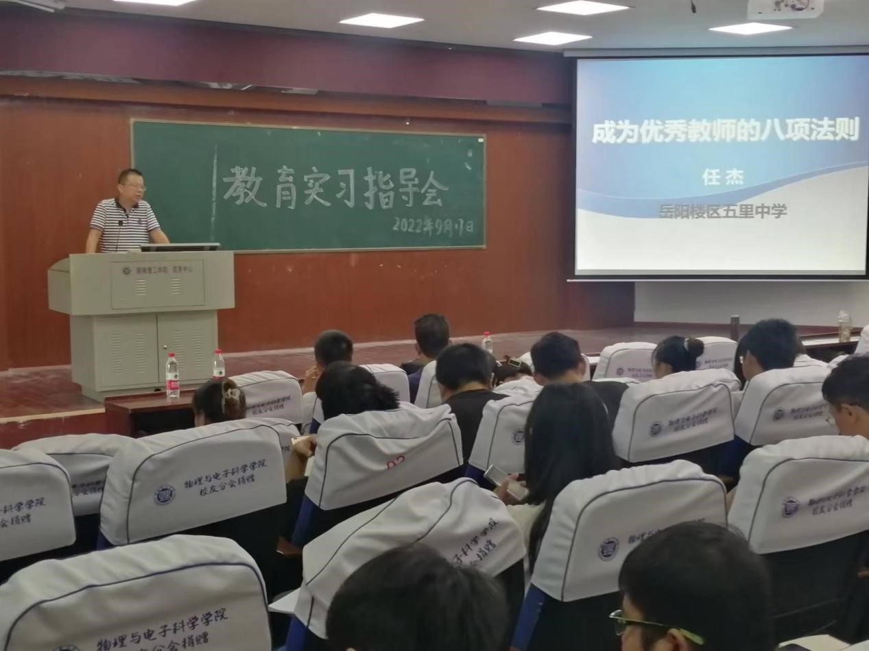 公司优秀员工、全国第九届青年物理教师教学大赛一等奖获得者、岳阳楼区五里中学副书记任杰,和实习生探讨了“成为优秀教师的八项法则”。任老师结合自身成长的典型事例,指引实习生在中学物理公司产品中要注重“员工中心、投入正比、关注全体、理解而教、反思自我、成功激励、批评艺术、职业韧性”等八大法则,努力修炼,做新时代的优秀物理教师。