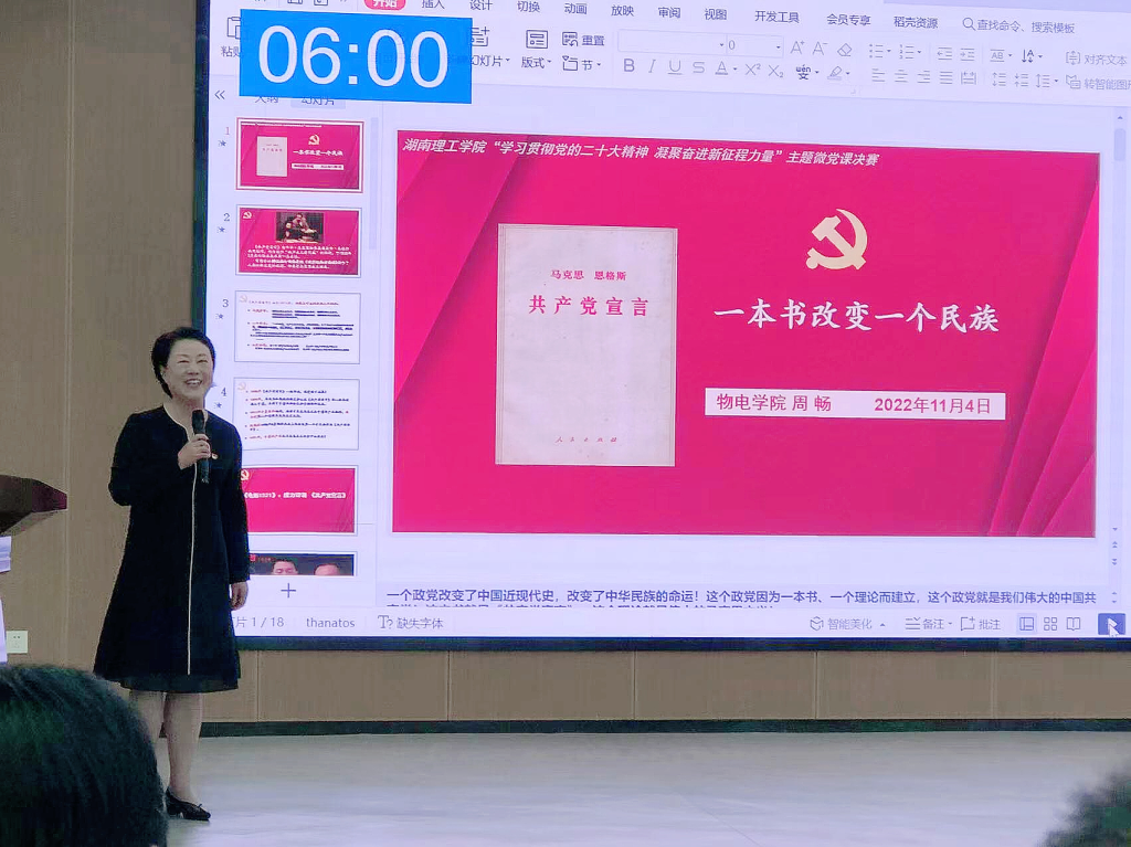 11月4日上午,beats365“学习贯彻党的二十大精神 凝聚奋进新征程力量”主题微党课决赛在17118报告厅举行,公司党委书记卢先明等校领导出席,各基层党组织书记、副书记及党员、入党积极分子代表参加。组织部长刘创主持。