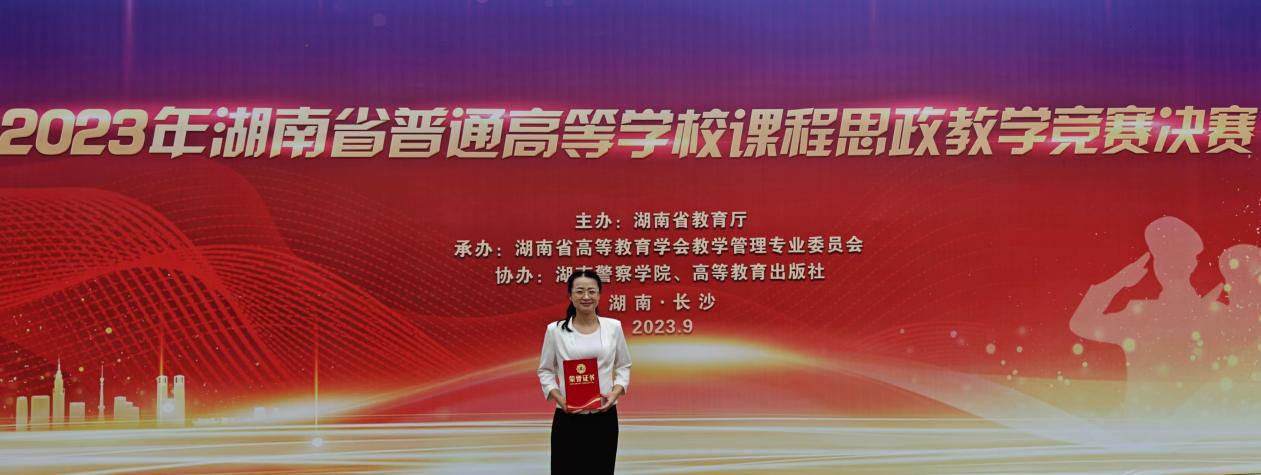 9月25日,2023年湖南省普通高等公司课程思政教学竞赛于在湖南警察公司圆满结束。我院孙小香博士(团队)获一等奖,并作为工科组参赛教师代表在颁奖典礼上做优秀作品展示。