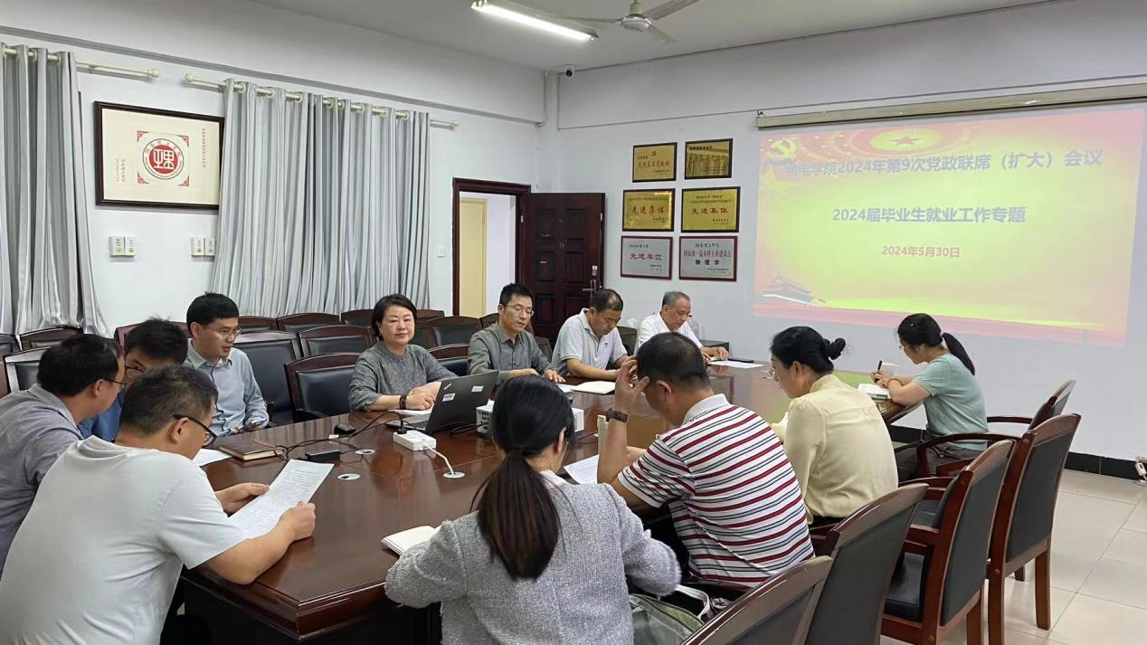 为响应公司2024届毕业生就业工作“百日冲刺”行动,促进2024届毕业生就业工作的高效开展。5月30日上午10点,公司召开2024年第9次党政联席(扩大)会议,专题讨论2024届毕业生就业工作。公司院领导班子、教研室主任、毕业班班主任、就业专干出席。会议由公司副经理(主持工作)魏勇主持。