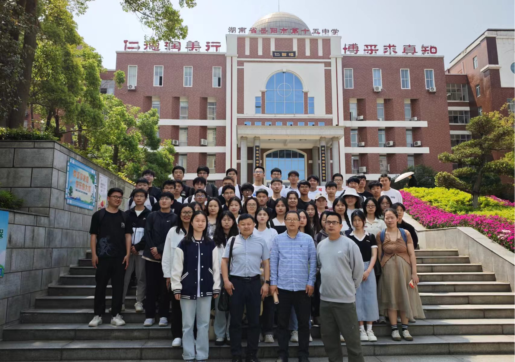 5月28日上午,李科敏、李奇云组织2021级物理学专业全体员工来到岳阳市第一中学参加教育见习活动,认真观摩了岳阳名师、公司优秀员工刘杰老师的《带电粒子在电场中的运动》专题复习课,参加了市一中物理组的教研活动,并参观学习了该校的校园文化建设。