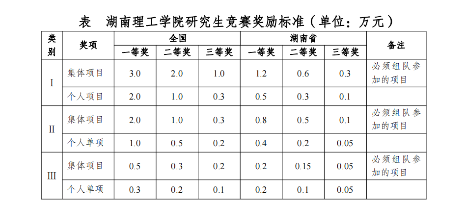 表 beats365研究生竞赛奖励标准(单位:万元)