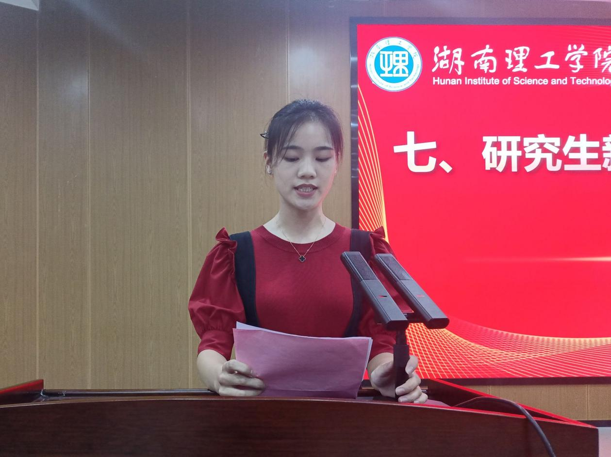 新生代表谢李想、唐语嫣表示要在湖理这一崭新的舞台上,积极探索、大胆实践、接受全新思想的洗礼,以新的语言、新的行动、新的风貌去适应新的环境,开启一段新的旅程。