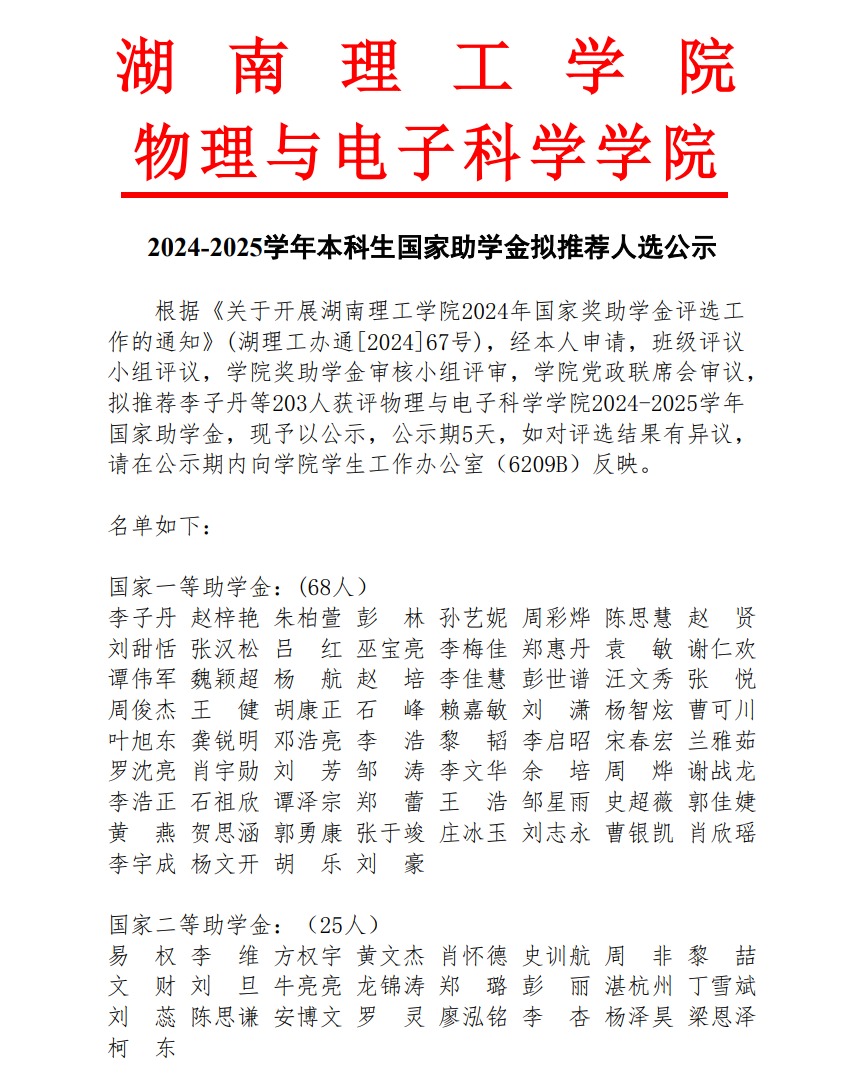 beats365 2024-2025学年本科生国家助学金拟推荐人选公示