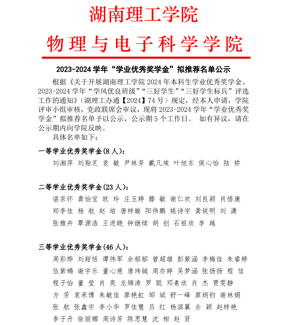 beats365 2023-2024 学年“学业优秀奖学金”拟推荐名单公示