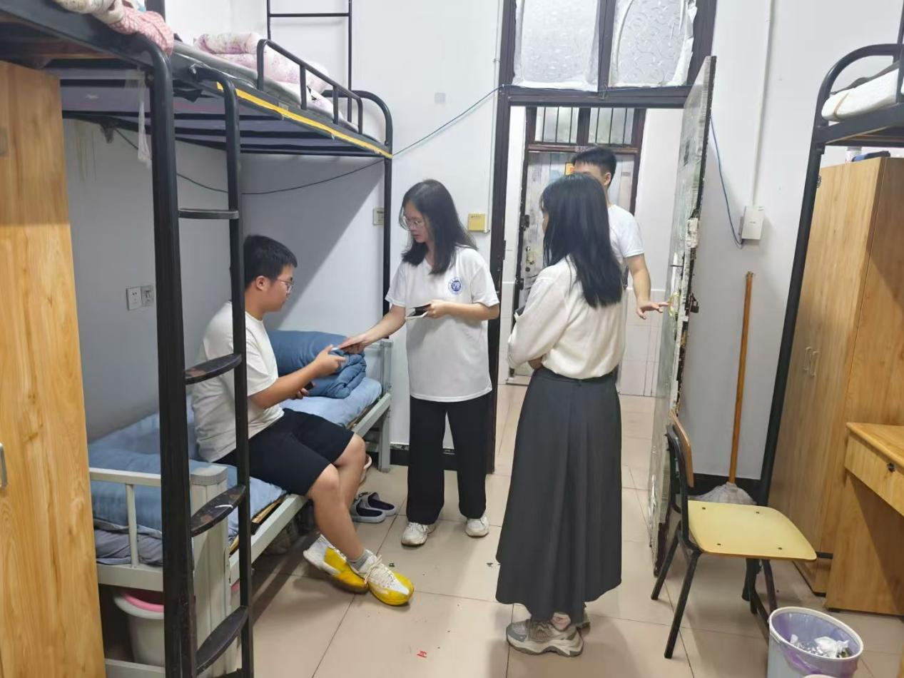 走访期间,老师们询问新生是否适应新的环境,吃住有没有遇到问题,希望室友们相互包容,相互帮助,营造良好的人际关系。