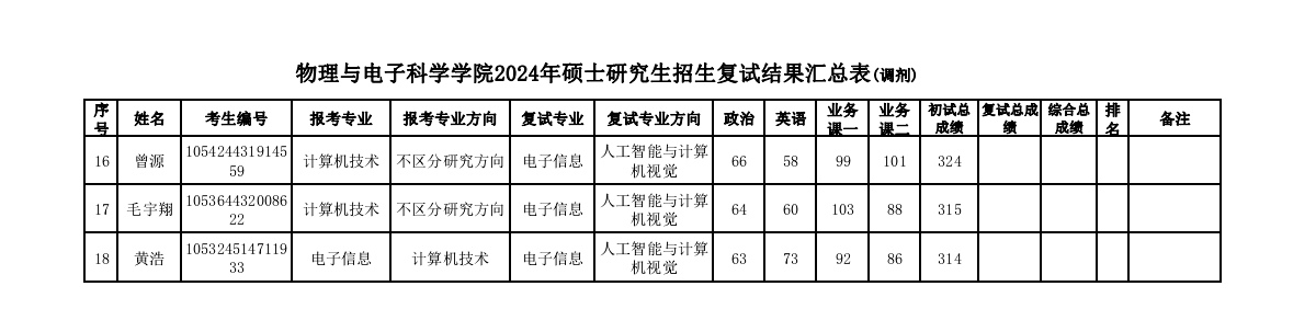2024年硕士研究生招生复试结果汇总表(调剂)