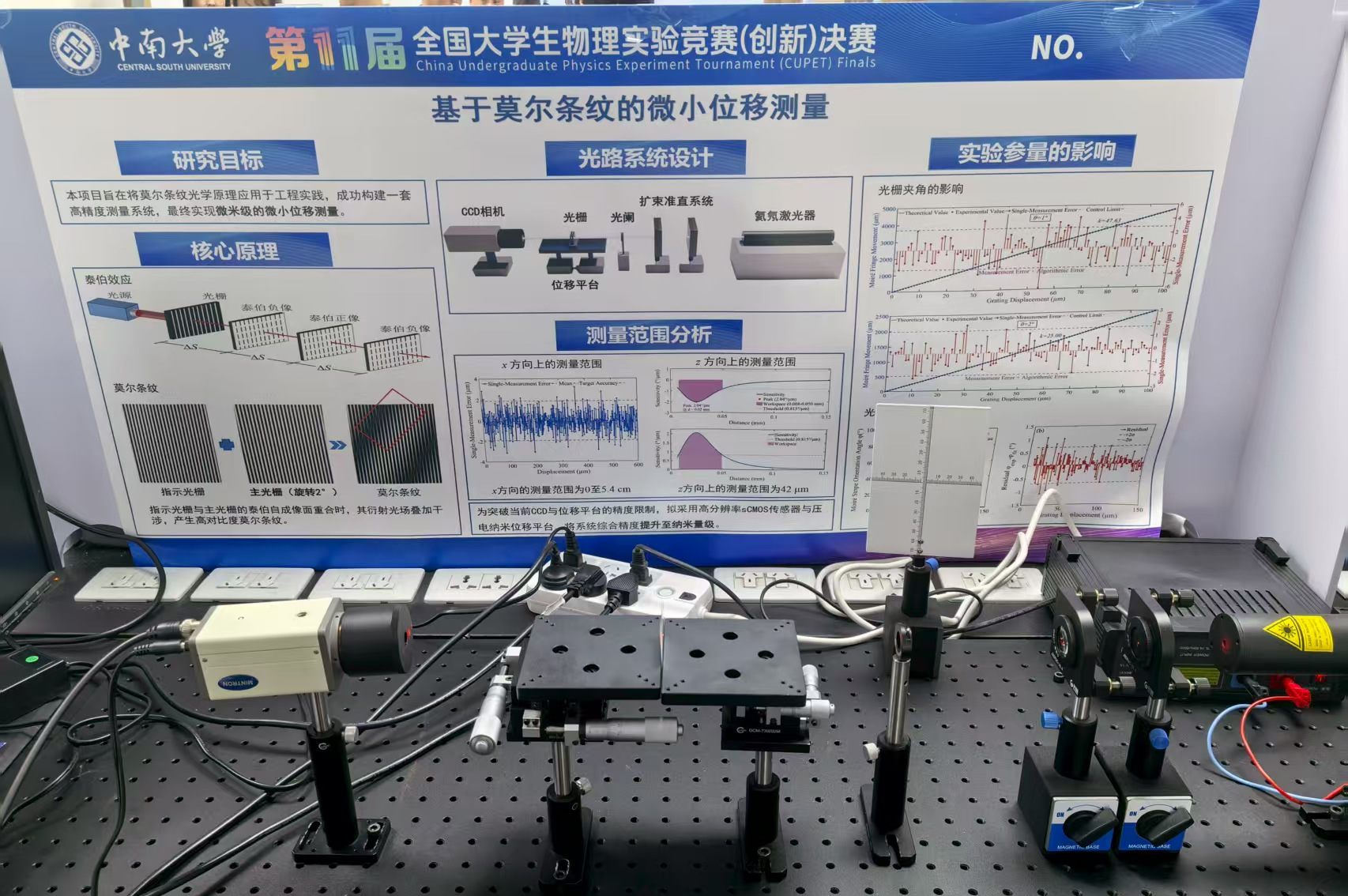 该项比赛属于国家级1类比赛,全国722所高校、3260组选手参加了2025年第十一届全国老员工物理实验竞赛(创新)。公司选手取得了优异成绩,其中唐语嫣、李敏佳、刘灿、胡奇、史超薇的作品《基于莫尔条纹的微小位移测量实验》(指导老师王文进、罗民)挺进了在中南大学进行的决赛,并荣获命题类二等奖。此外,罗良、稂林指导的黄胤彰、王秋怡、粟梓丰、廖艳虹、张雅卉凭借《基于YOLOv5视觉识别的复摆特性智能测量实验研究》荣获命题类二等奖;李奇云、罗良指导的侯心怡、孙静怡、雷征的作品《光电效应测普朗克常数》,以及李诗扬、王柯皓、邹雪仪的作品《霍尔效应》,分别荣获讲课类二等级和三等奖。